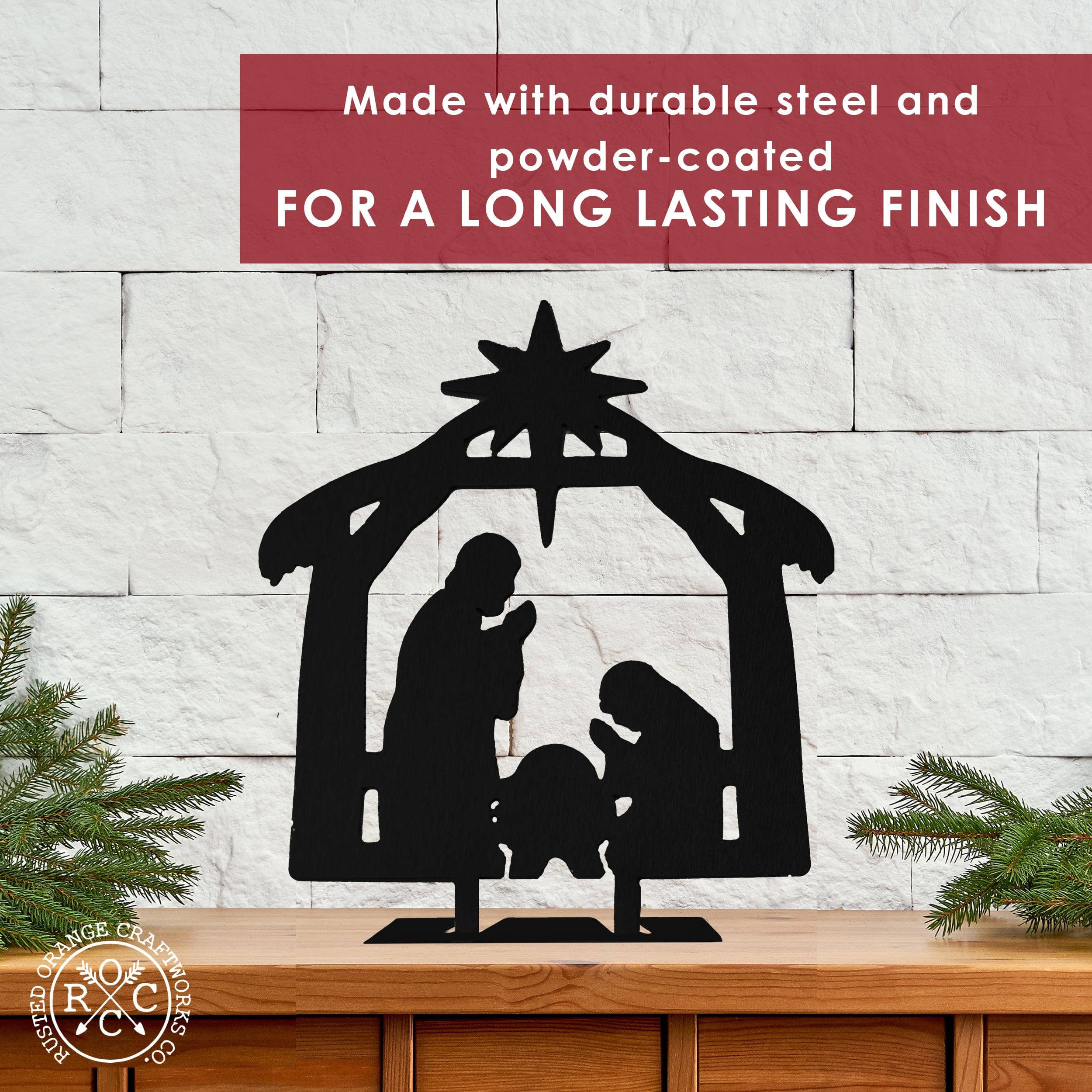 It's the Quintessential Christmas Gift for Your Loved Ones: This custom decor makes a perfect gift for friends and family on various holidays and occasions. Simple yet stunning decor. This piece is perfect for any piano top, mantel, or table top surface. Surprise your loved ones with this metal nativity as a thoughtful neighbor, friends, family, or co-worker gift.