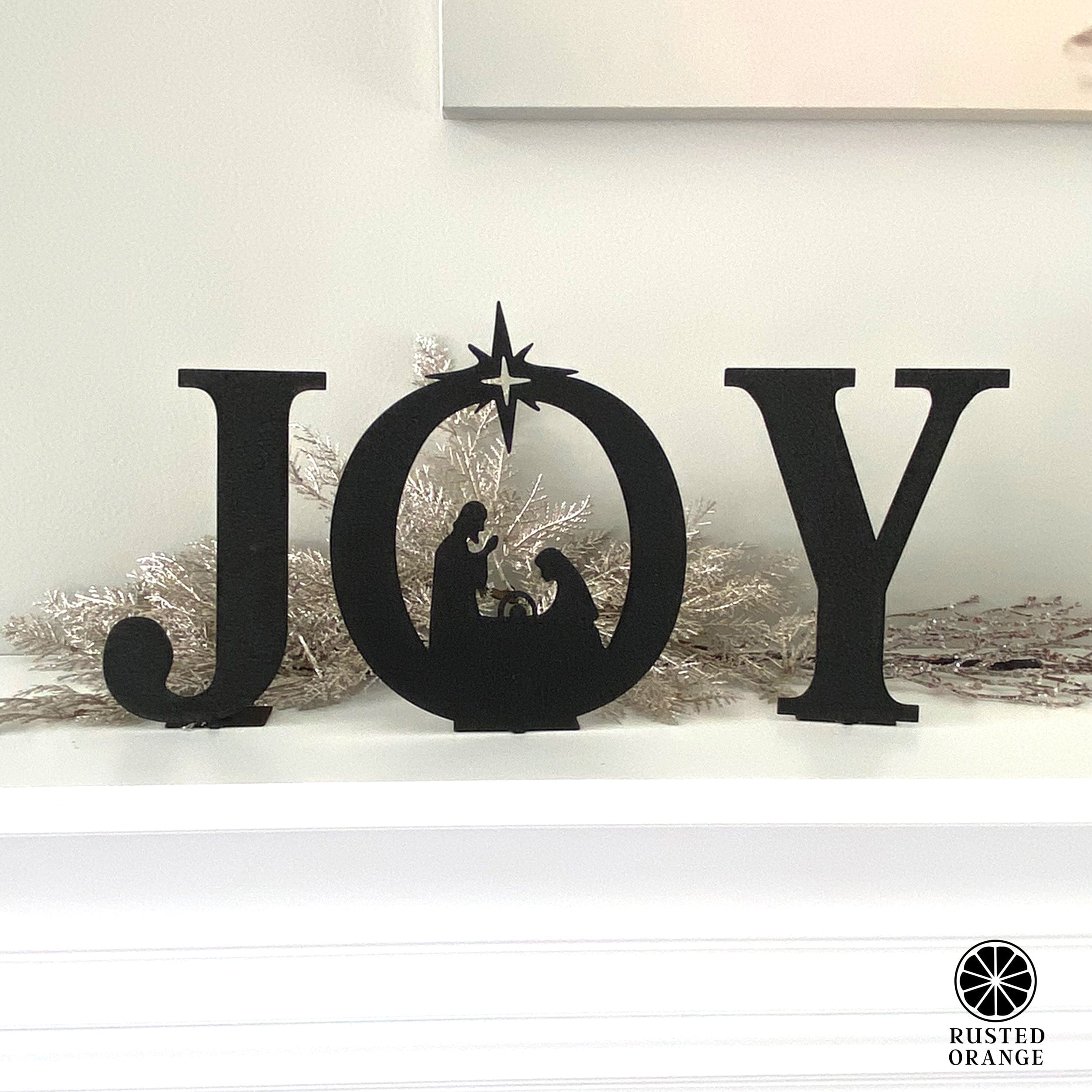• Rusted Orange Craftworks Co. Nativity Sets Joy Nativity - 4 Sizes - Metal Stand Up Joy Sign with Christmas Manger Scene