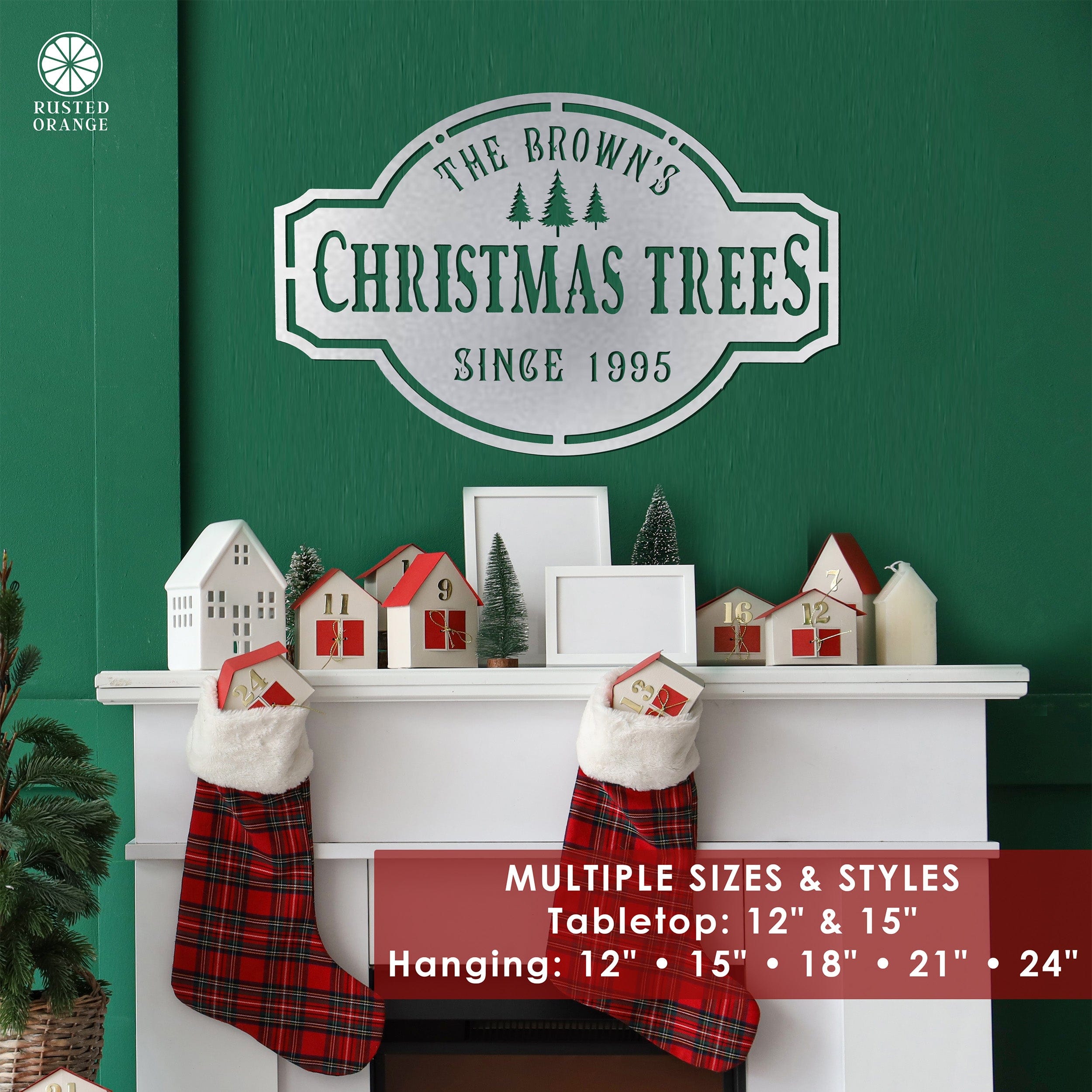 Celebrate the magic of the season with this Personalized Christmas Trees Metal Sign, a festive blend of rustic farmhouse style and holiday charm. Featuring the bold center line “CHRISTMAS TREES”, this custom metal sign transforms your porch, kitchen, mantle, or entryway into a warm and welcoming Christmas display.