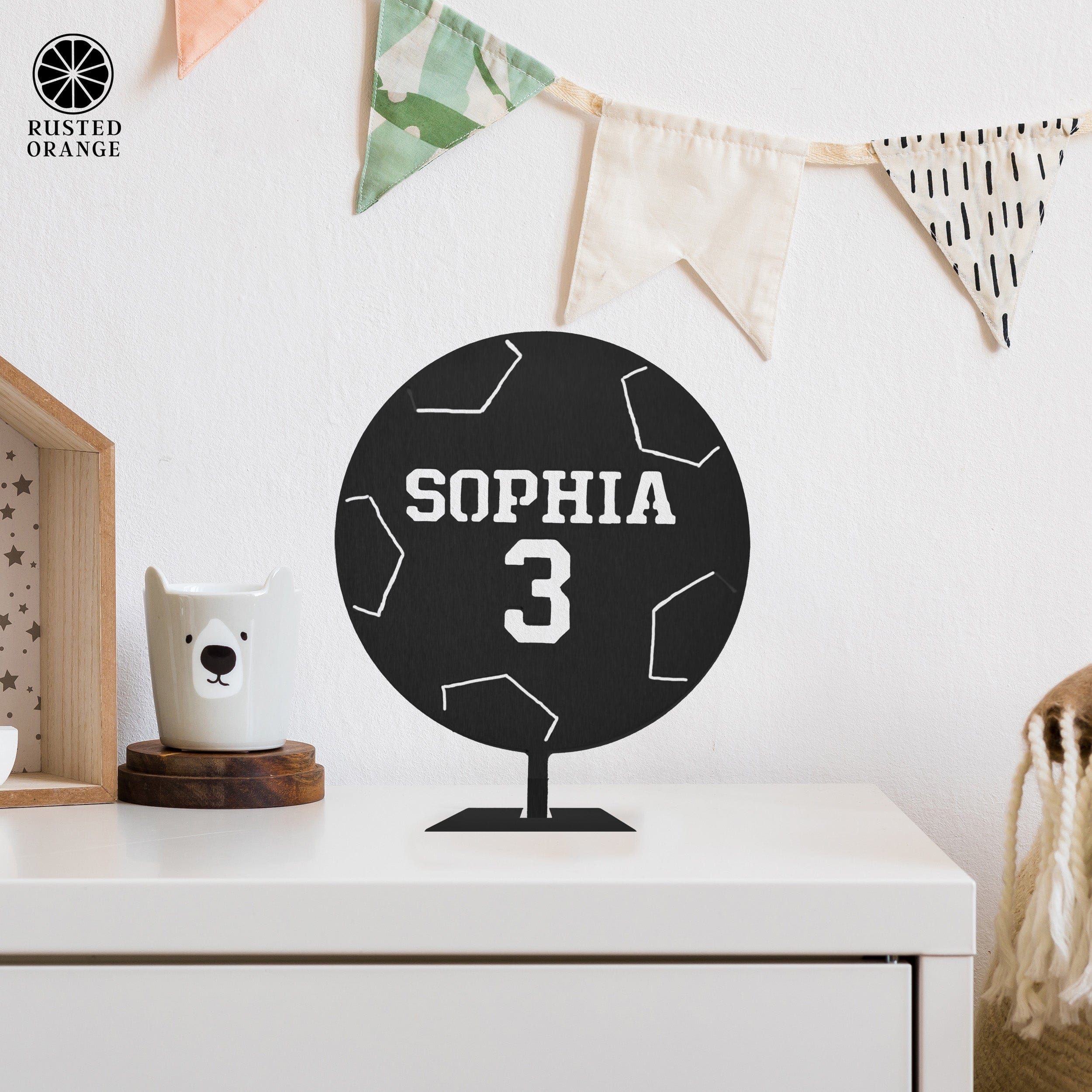 • Rusted Orange Craftworks Co. Athletics Soccer Ball Custom Standing Sports Balls - 6 Styles - Metal Ball With Name and Player Number
