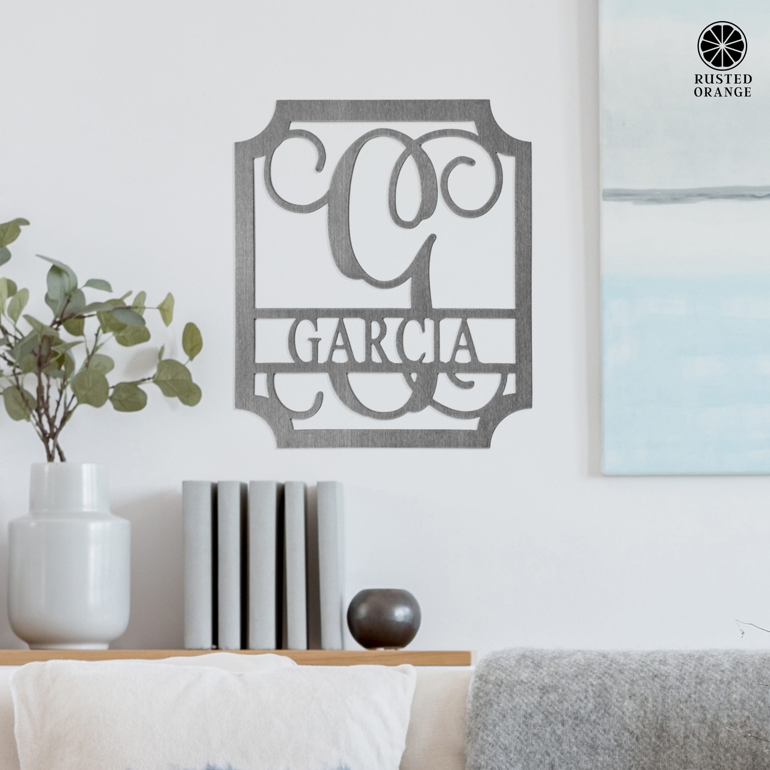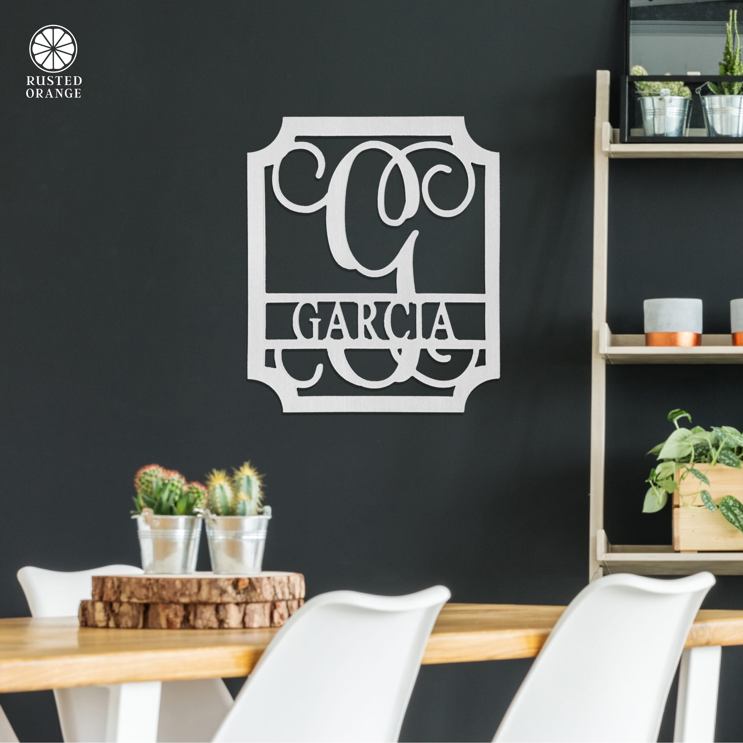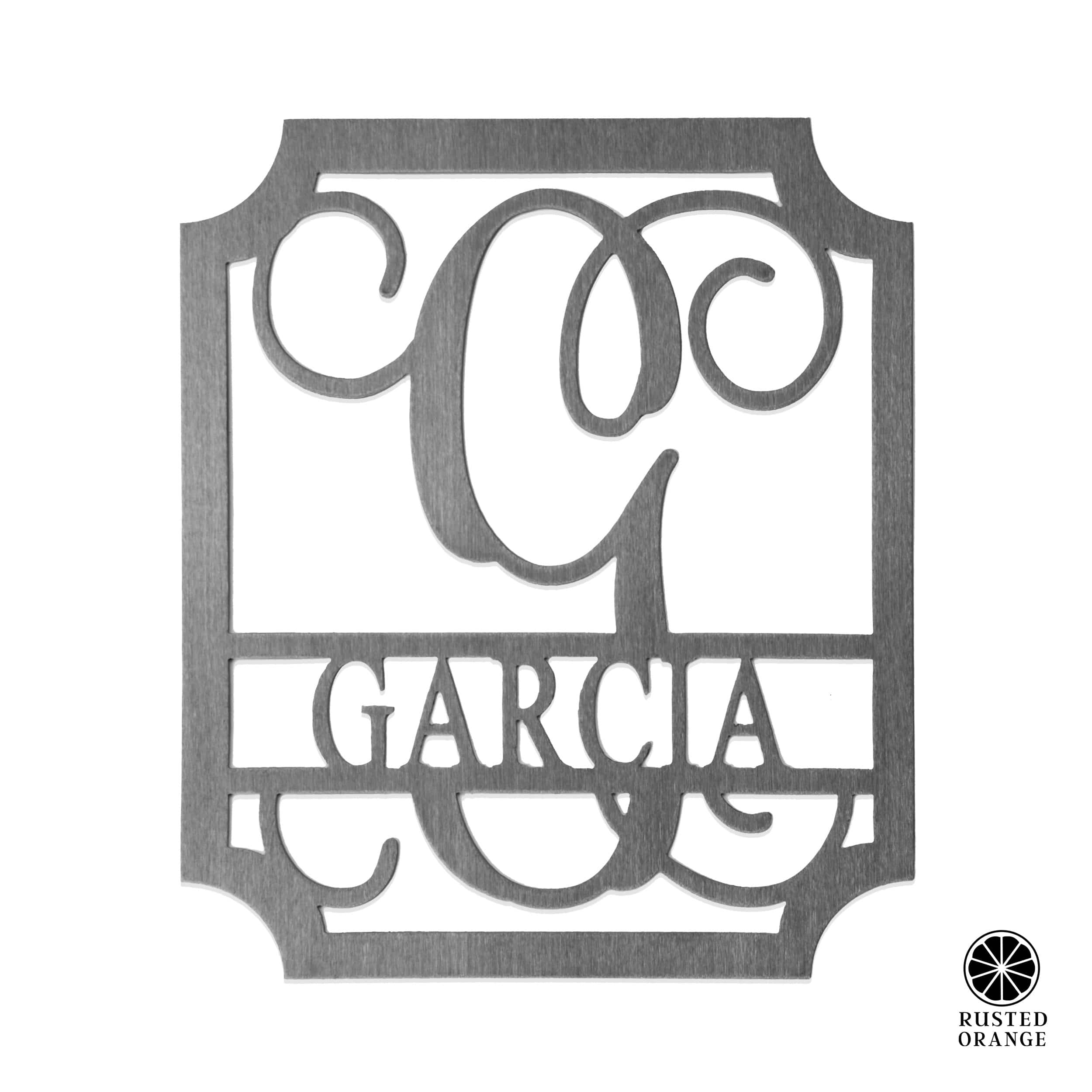 • Personalized metal name sign with elegant script monogram