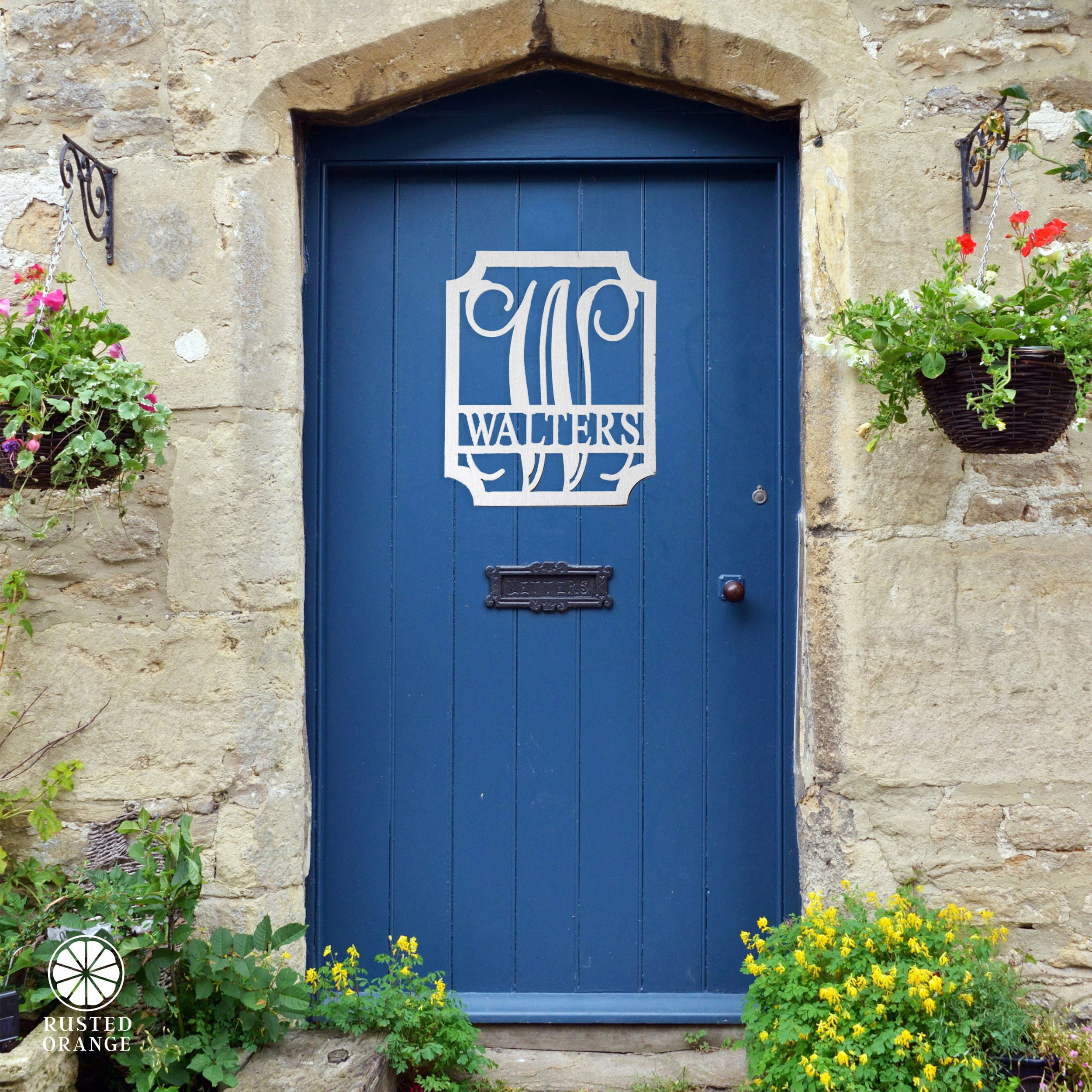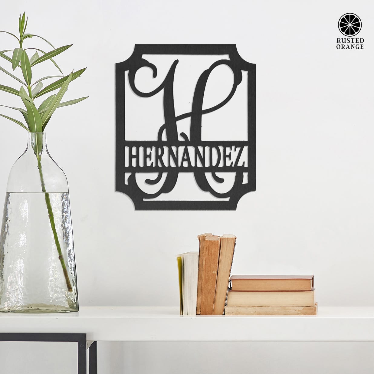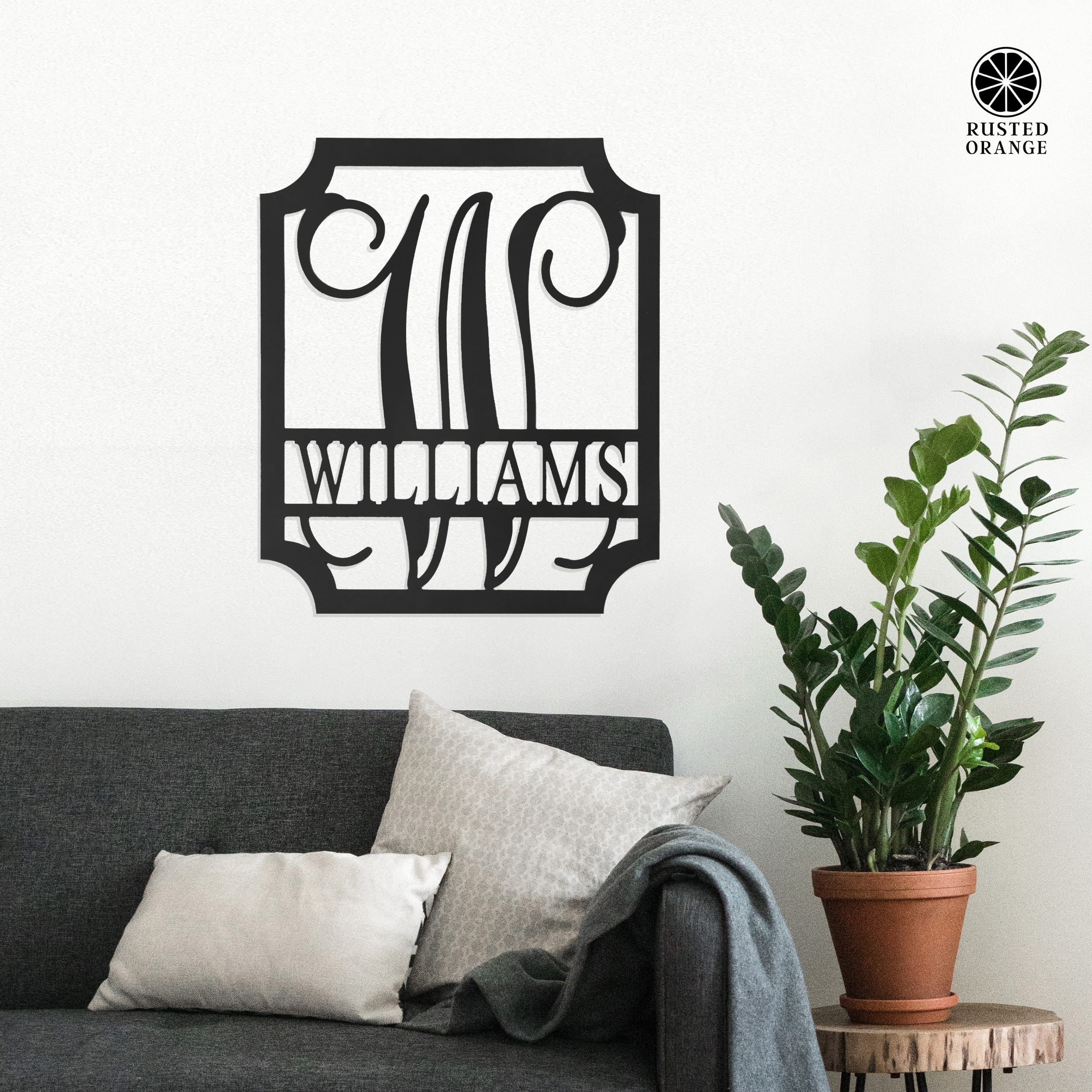 • Personalized metal name sign with elegant script monogram