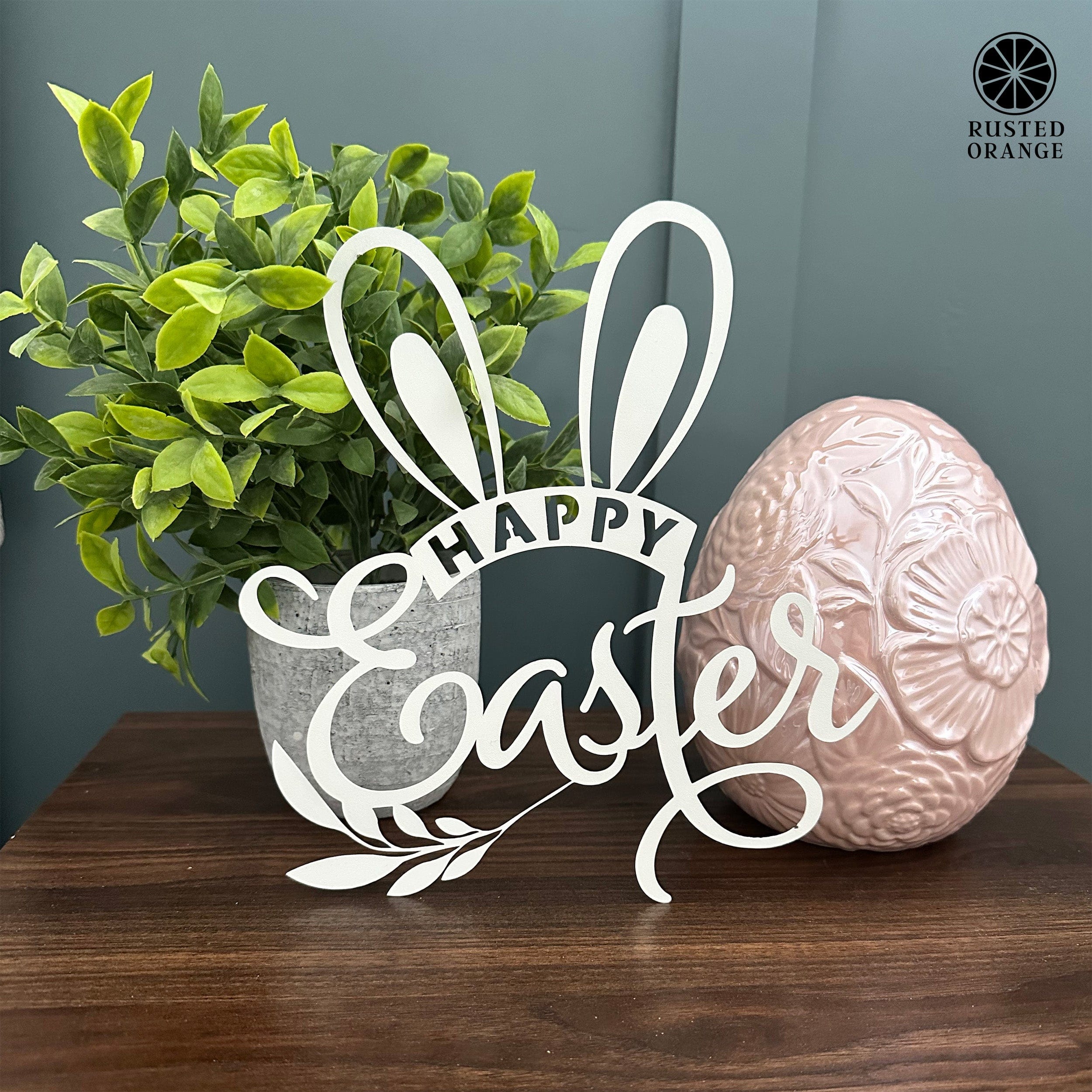 Enhance your Easter decor with our Happy Easter Wreath Bunny Ears, measuring 9x9 inches. This charming piece is designed to complement any Easter display, fitting perfectly on a door wreath. Featuring whimsical bunny ears, the design includes "Happy" in a banner and "Easter" in elegant handwriting script, adding a festive touch to your home. Available in a variety of powder-coated finishes for durability and style versatility. Proudly laser-cut in the USA, ensuring quality craftsmanship. Bring joy to your Easter celebrations with this delightful addition!