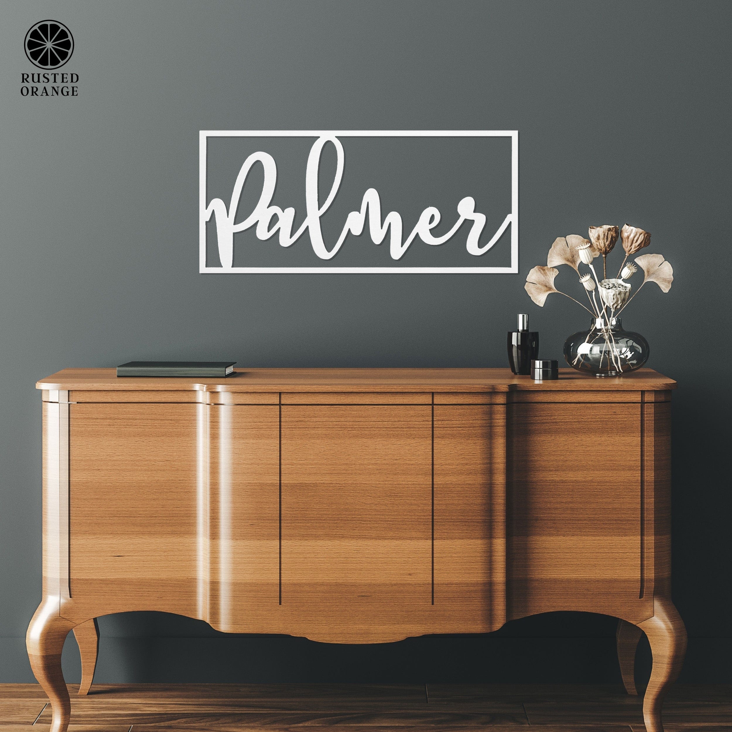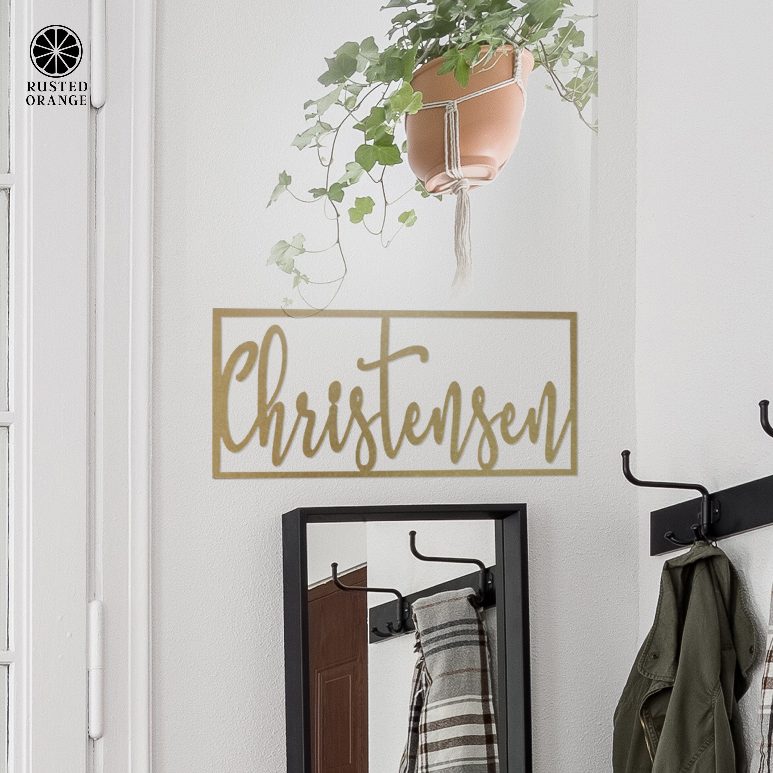 Elevate your home's welcoming ambiance with this customizable hanging sign, ideal for your doorstep or as an eye-catching wall accent in your family's favorite gathering space. Designed with bold uppercase letters and crafted from durable steel, it's a stylish choice for both metal monogram signs and personalized name wall art. Whether it's a thoughtful gift for loved ones or a charming addition to your own home, this front entry sign infuses any space with a unique personal touch. Display it on a mantle, shelf, or by the front door to make a statement.